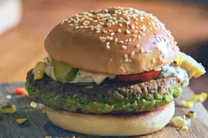 Jamie Oliver served up a tasty smoky sweetcorn veggie burger with feta cheese and brandy burger sauce on Jamie; What To Eat This Week.