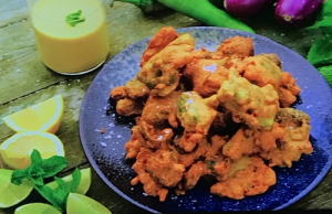 Nisha Katona served up tasty IPA battered onion bhaji with mango and mint lassi on Nisha Katona’s Home Kitchen.