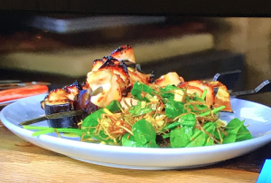 The ingredients are: 2 x 200g chicken breasts, cut into strips, ½ aubergine, diced, 100g miso paste, 100g caster sugar, 50ml sake and 50ml mirin.