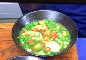 Jonathan Phang served up a tasty Chinese style chicken noodle soup with brandy and dried shrimp no James Martin’s Saturday Morning.
