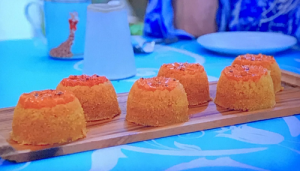 Prue Leith showcased delicious gluten free orange and cardamom upside down steamed puddings with ground almonds and creme Anglaise for a technical challenge on The Great British Bake Off.