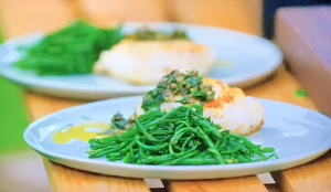 mary Berry and Tom Allen cod loin with caper, lemon and butter sauce recipe on Mary at 90: A Lifetime of Cooking October 28, 2025admin mary Berry and Tom Allen served up tasty cod loins with samphire and a caper, lemon and butter sauce on Mary at 90: A Lifetime of Cooking. See recipes by Mary in her book titled: Mary 90 available from Amazon now.
