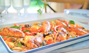 Mary Berry served up a tasty fragrant chicken traybake with roasted vegetables basil and Thai sauce on Mary at 90: A Lifetime of Cooking.