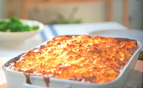 Mary Berry served up tasty braised beef with cauliflower potato mash, smoked bacon, chestnut mushrooms and red current jelly on Mary at 90: A Lifetime of Cooking.