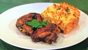 Marie Mitchell served up tasty reef chicken with Pop’s mac and cheese on Sunday Brunch.