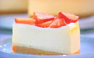 Mary Berry and Gabby Logan served up a delicious New York cheesecake with strawberries and digestive biscuits on Mary at 90: A Lifetime of Cooking.