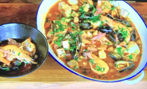 James Martin served up a tasty Spanish fish stew with beans, garlic, hake and lardons on James Martin’s Saturday Morning.