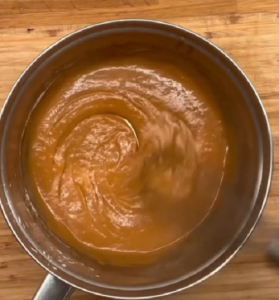 The ingredients are: 2 large onions, 2 large carrots, 2 celery sticks, 8 chestnut mushrooms, 4 garlic cloves, Olive oil, 1 heaped tbsp tomato paste, 1 dollop of soy sauce OR tamari sauce if you’re GF, 1 tbsp yeast extract – check the label if you’re GF, 1 tbsp miso paste – check the label if you’re GF, 1/2 litre hot water, 2 tbsp butter and 3 tbsp cornflour.
