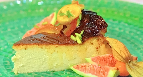 Simon Rimmer served up a delicious pistachio basque cheesecake with pistachio cream and honey on Sunday Brunch.