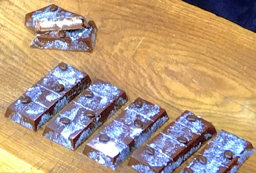 The Ingredients for the Espresso Layer are: 100ml whipping cream, 35g glucose, 100ml Vodka, 50ml fresh brewed coffee, 50ml coffee liquor, 320g Sao Tome 70% dark chocolate and 30g chocolate coffee beans.