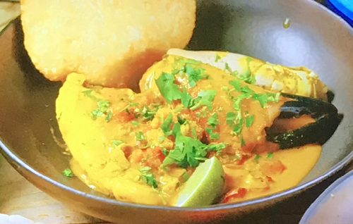 Shivi Ramoutar served up a tasty curried crab with dumplines/dumplings and fried bakes for actor Paterson Joseph on Jimmy and Shivi’s Farmhouse Breakfast.