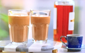 John Torode and Lisa Faulkner served up delicious breakfast banana, cacao and date milkshakes with a choice of coffee or honey spiced rum to finish on John and Lisa’s Weekend Kitchen.