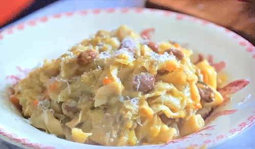 Jamie Oliver served up a tasty pork and fennel white ragu with homemade pasta and pumpkin on Jamie’s Feast For A Fiver.