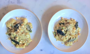 Jamie Oliver served up a tasty creamy broccoli and blue cheese gnocchi with crispy sage on Jamie’s Feast For A Fiver.