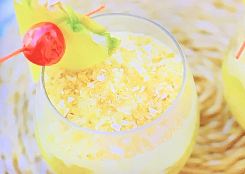 To decorate: fresh nutmeg, for grating (or ground nutmeg), 2 tbsp toasted shredded/desiccated coconut and Maraschino cherries & slices of pineapple (optional).