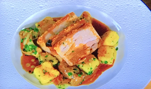 James Martin and served up tasty manchego gnocchi with fresh cep mushrooms, roast pork and a lemon and veal sauce on James Martin’s Saturday Morning.