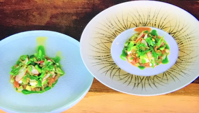 James Martin served up tasty ceviche of tuna and fresh scallops with elderflower cordial cream dressing and toasted sunflower seeds on James Martin’s