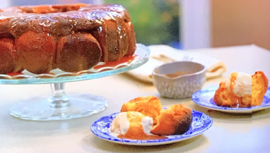 John Torode and Lisa Faulkner sweet and sticky pull apart bread with salted caramel sauce recipe on John and Lisa’s Weekend Kitchen