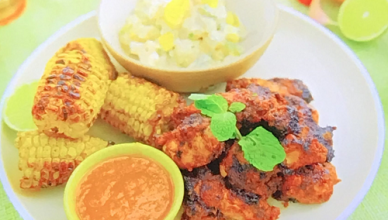 Ainsley Harriott served up tasty Carnival Rum Punch Chicken Wings with Zesty Sweet Corn on Ainsley’s Taste of the Bahamas. The ingredients are: