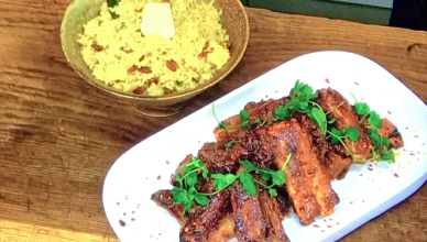 James Martin served up a classic chicken blanquette with pancetta, white vegetables and croutons on James Martin’s Saturday Morning. The ingredients are: 1