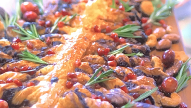 Jamie Oliver served up a delicious chocolate arctic roll with clementine flavoured ice cream and cranberries on Jamie’s Cook-Ahead Christmas. The ingredients for
