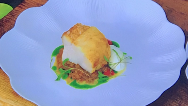 Lisa Goodwin-Allen roasted monkfish on the bone with spiced lentils an sheep’s yoghurt recipe on James Martin’s Saturday Morning