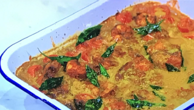 John Gregory-Smith served up a tasty Keralan-style monkfish curry on Sunday Brunch. The ingredients are: 1 onion, roughly chopped, 300g cherry tomatoes, halved,