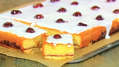 Simon Rimmer cherry Bakewell traybake recipe on Sunday Brunch January 25, 2026January 25, 2026admin Comment Simon Rimmer served up a delicious cherry Bakewell traybake on Sunday Brunch. The ingredients for the base are: 250g of flour, 125g of [...]