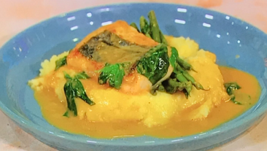 Simon Rimmer served up tasty spicy chicken thighs with gochujang paste and cream sauce on Sunday Brunch. The ingredients are: 500g boneless skinless