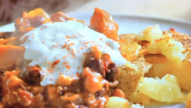 Jamie Oliver served up a tasty baked bread and tomato soup with beans, mozzarella and rosemary on Jamie’s Feast For A Fiver. The
