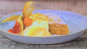 Simon Rimmer served up a delicious tarta de santiago with creme fraiche and lemon curd on Sunday Brunch.