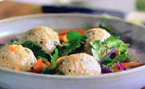 Jamie Oliver served up tasty chicken balls and rainbow broth with pickled ginger, miso and brown rice on Jamie: Eat Yourself Healthy.