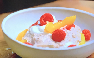Jamie Oliver served up peach Melba overnight oats with raspberries and peaches on Jamie: Eat Yourself Healthy.