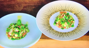 James Martin served up tasty ceviche of tuna and fresh scallops with elderflower cordial cream dressing and toasted sunflower seeds on James Martin’s Saturday Morning.