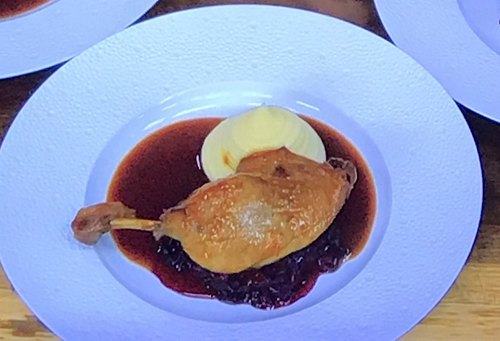 James Martin and Tommy Banks served up tasty honey roast duck confit with mashed potato, stewed red cabbage and a red wine and sherry vinegar sauce on James Martin’s Saturday Morning.