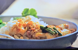 Jamie Oliver served up a tasty quick fish curry with green beans and clove-flavoured rice on Jamie’s Feast For A Fiver.