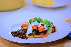 Prue Leith and her husband John, served up tasty Indian pancakes with Carlin pea saag and paneer on Prue Leith Cotswold Kitchen.