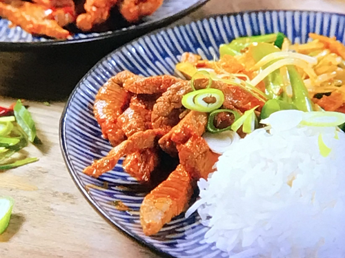 Shivi Ramoutar served up a tasty Korean style in a flash bibimbap with steak, vegetables and Korean gochujang chili sauce on Jimmy and Shivi’s Farmhouse Breakfast.