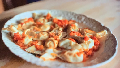 Liam Charles brownuts with white chocolate and blackcurrant Swiss meringue recipe on Junior Bake Off