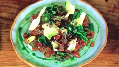 Simon Rimmer served up tasty spicy chicken thighs with gochujang paste and cream sauce on Sunday Brunch. The ingredients are: 500g boneless skinless