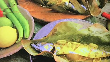 Nisha Katona Bengali spiced fish (mackerel) with English mustard wrapped in banana leaves recipe on Nisha Katina’s Home Kitchen
