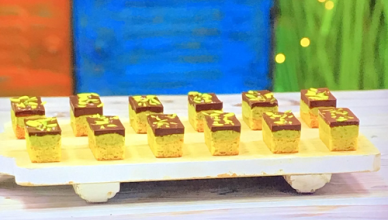 Rav Gill showcased delicious Dubai chocolate millionaire shortbread with pistachios for a technical challenge on Junior Bake Off. See recipes by Rav in